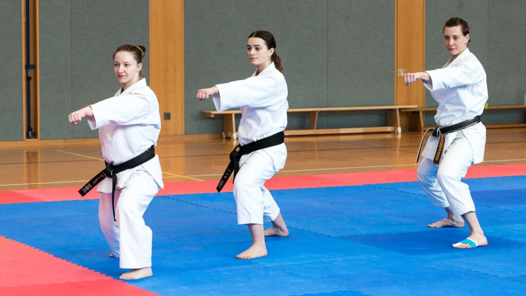 Der Samstag begann früh – und intensiv. Während die Kumite-Gruppe an taktischen Varianten und Reaktionsmustern arbeitete, widmete sich die Kata-Gruppe der technischen Feinarbeit, dem Ausdruck und der Abstimmung im Team. Jede Bewegung wurde hinterfragt, jede Sequenz bewusst gestaltet. Nach einer kurzen Pause folgte am Nachmittag die nächste Trainingseinheit. Kleine Korrekturen, große Wirkung – Schritt für Schritt entstand mehr Sicherheit, mehr Stabilität, mehr Ausdruck. Die Intensität blieb hoch – ebenso wie die Konzentration.