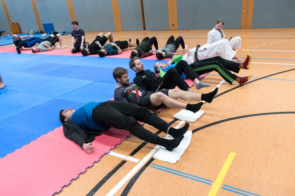 Nach der ersten intensiven Einheit ging es nicht einfach nur ins Abendprogramm mit einem theoretische Teil des Gasshukus. Themen wie Kraftentwicklung, Schnelligkeit und Regeneration rückten in den Fokus. Ziel war es, uns als Karateka Werkzeuge für ein nachhaltiges, eigenverantwortliches Training außerhalb des Dojos mitzugeben. Die Vermittlung athletischer Grundlagen bildete damit eine wichtige Ergänzung zur technischen Arbeit auf der Matte. Es war ein wichtiger Schritt hin zu mehr Eigenverantwortung – denn internationale Spitzenleistungen entstehen nicht nur im Training, sondern auch in der Vorbereitung dazwischen. Der Tag endete mit gemeinsamen Aktivitäten, die Raum für Austausch boten, bevor am nächsten Morgen wieder volle Konzentration gefragt war.