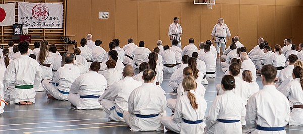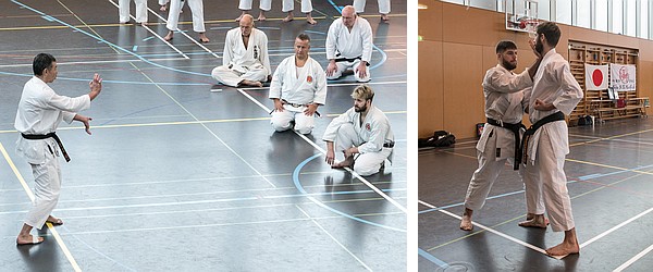 Für Hochspannung sorgte ein internationales Instruktoren-Team, bestehend aus Nobuaki Kanazawa kancho (9. Dan) und Paul Huglo sensei (4. Dan) aus dem Honbu Dojo in Tokyo, Rikuta Koga shihan (9. Dan) und Toni Racca sensei (8. Dan) aus der Schweiz, Eugen Landgraf sensei (8. Dan) aus Deutschland und Stéphane Castrique sensei (7. Dan) aus Belgien. Ein Hochkarätiges Line-Up mit viel Erfahrung, von dem man eine Menge lernen kann.