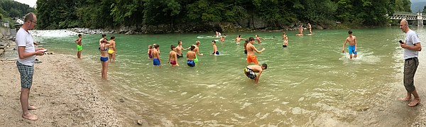 Am ersten Abend sind zum Beispiel gleich fast alle 55 teilnehmenden Kinder und ein paar Betreuer in der Ischl baden gegangen, was zwar ein bisschen kalt war, aber trotzdem extrem Spaß machte.